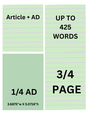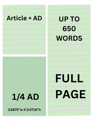 If you are ready to submit your information and article, a draft will be sent to you for your approval. Please note that we offer an option to be visible in MORE than one issue. We have special pricing for visibility in 2 or 4 issues. You also have an option of buying more than one article or directory listing in the "quantity" option at checkout. We will send you another form for separate business.